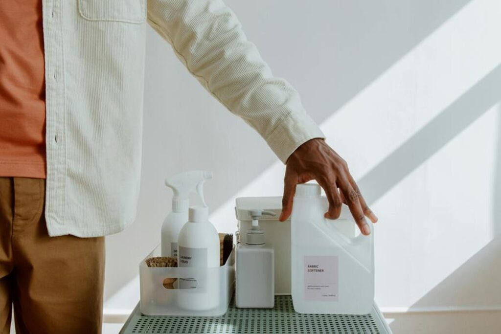 Repurpose old shoeboxes or cardboard boxes to create storage bins for laundry detergents, dryer sheets, and other supplies. These boxes can be covered with decorative contact paper or fabric to match your laundry room’s aesthetic.