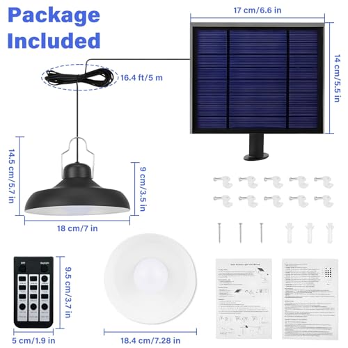 Solar Pendant Light Outdoor – Solar Shed Light Indoor 3000K 4500K 6500K with Remote Control Outdoor Lights,IP65 Waterproof Solar Indoor Lights for Garden,Chicken Coop,Gazebo,Barn