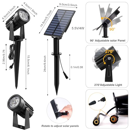 Solar Spot Lights Outdoor, Solar Landscape Spotlights IP65 Waterproof 9.8ft Cable, Auto On/Off Outdoor Wall Lights for Garden Yard Driveway Porch Walkway Pool (1-in-1 3000K Warm White 4 Pack)