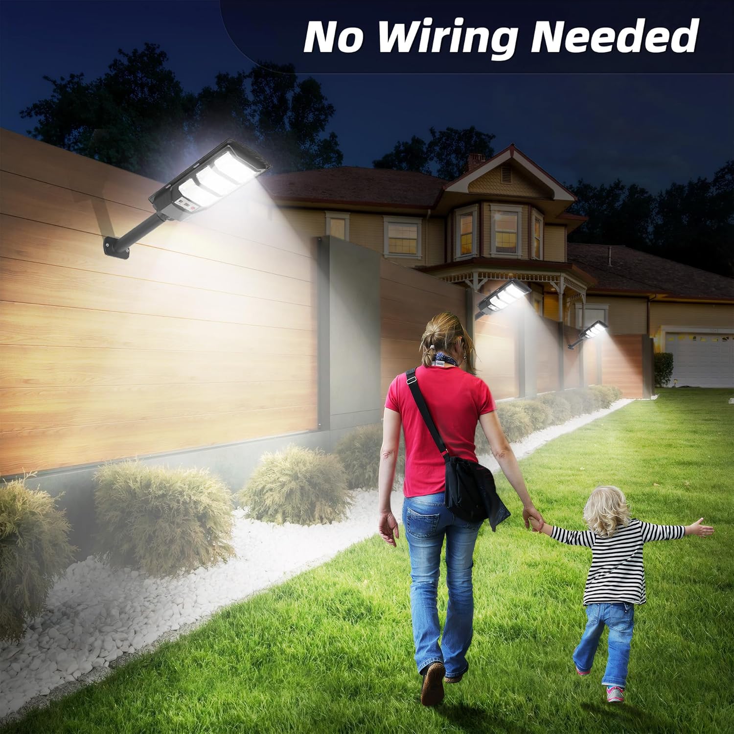 IP67 Waterproof Performance: Solar lights outdoor waterproof are made of durable ABS plastic and monocrystalline silicon solar panel, IP67 waterproof ensures the outdoor light fixture can function well even in heavy rain, snowstorms.