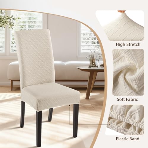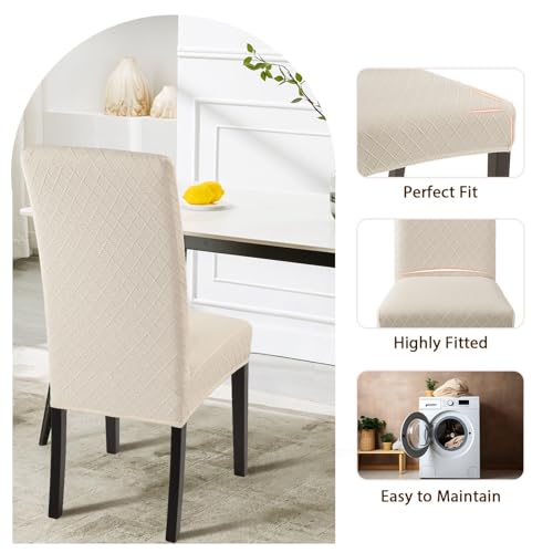 SearchI Dining Room Chair Covers Set of 4, Stretch Jacquard Parsons Chair Slipcovers Super Fit Removable Washable Kitchen Chair Protector Cover for Dining Room, Hotel, Ceremony (Beige Rhombus)