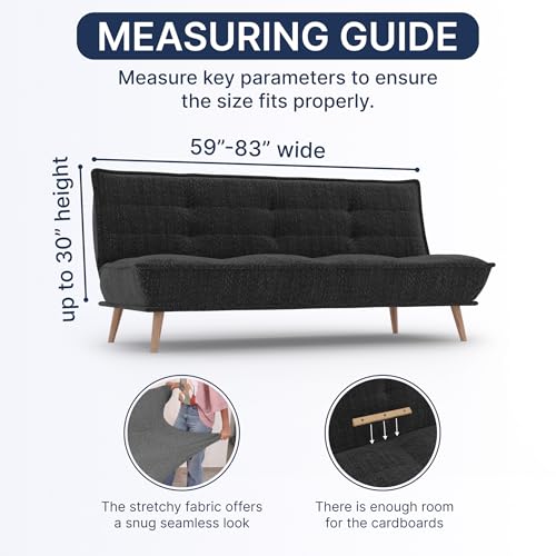 ELEGANT DESIGN: Sofa click clack slipcovers is strapless with an elasticized bottom. Special anti-slip cardboards included. They prevent klik klak slip cover from sliding. Instructions included.