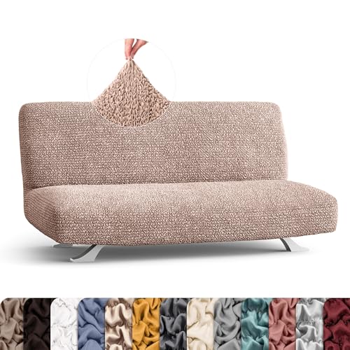 PAULATO BY GA.I.CO. Futon Cover – Armless Couch Cover Sofa Bed Slipcover Without Armrest – Soft Fabric Covers – 1-Piece Form Fit Stretch Futon Protector for Kid Pet – Microfibra – Blush Taupe