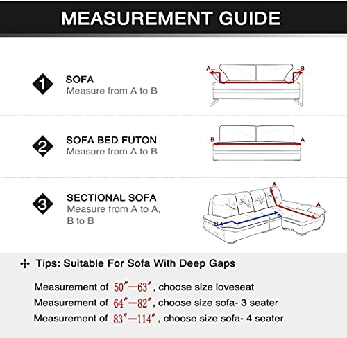 📏PERFECT FIT: As shown in the measurement guide picture, our slipcover fits for loveseat wide from 50″ to 63″, 3 Seater Sofa from 64″ to 82″, 4 Seater Sofa from 83″ to 114″ [NOTE: PLEASE ENSURE YOUR SOFA LENGTH INCLUDED THE ARMRESTS.]