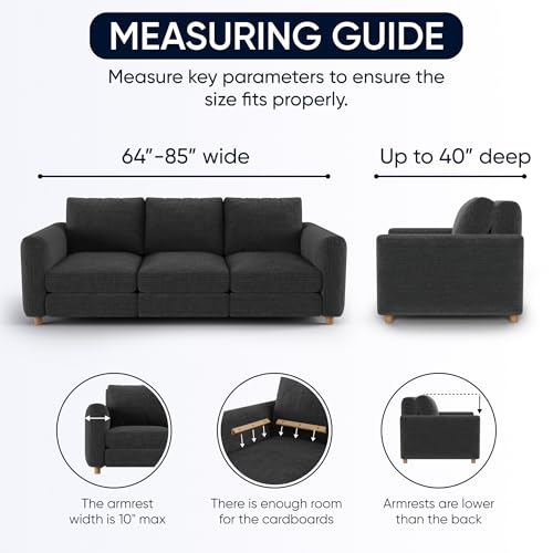 PERFECT FIT – ONE SIZE: Sofa cover fits most couches. Slipcovers are made of patented stretch bi-elastic fabric. Furniture covers fitting loveseat 64”- 85” wide. PLEASE MEASURE BEFORE PURCHASING.