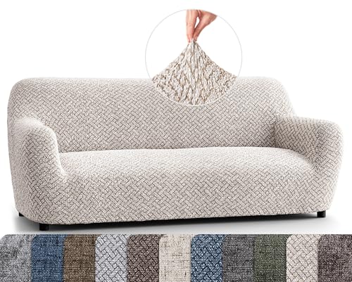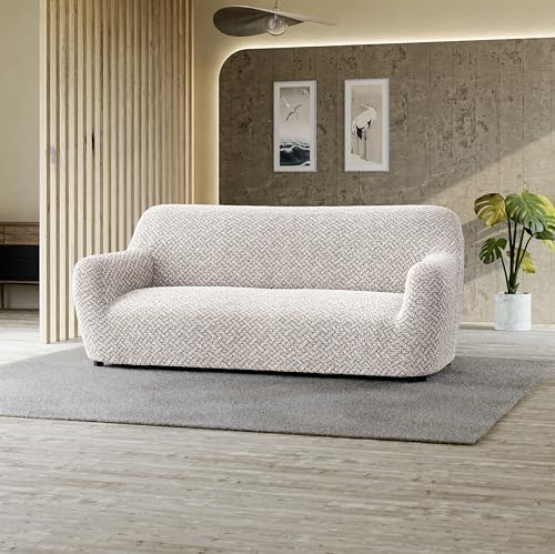 PAULATO BY GA.I.CO. Sofa Slipcover – Stretch Couch Cover – Stylish Cushion Sofa Cover – Soft Polyester Fabric Slipcovers – 1-Piece Form Fit Washable Protector for Pet – Microfibra – Venezia Cream