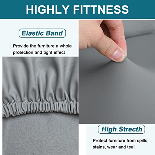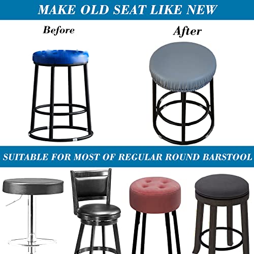 Stretch PU Round Bar Stool Covers, Waterproof Seat Covers, Washable Cushion Slipcovers With Elastic Bands for 12-17 Inch Chair (2Pcs, Gray)